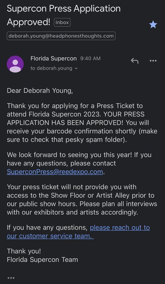 I am honored to say that I have press passes for the Florida Supercon 2023 Headphones ThoughtsFlorida Supercon