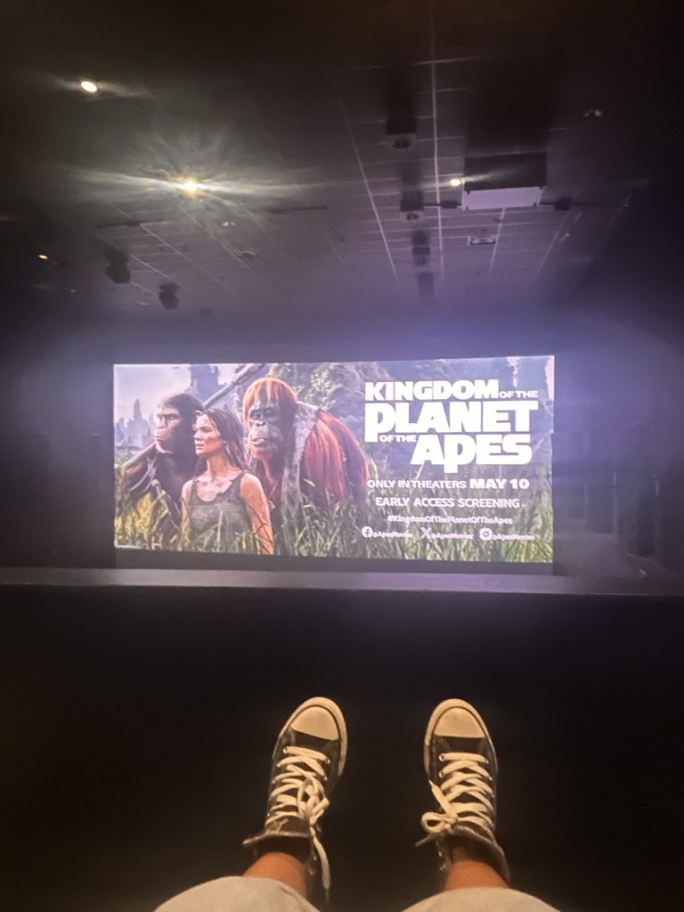 So, this movie definitely blew away my expectations. I’ve been a fan of the series since the first one came out. I think I was in high school or maybe even middle school when the first one, with James Franco starring, was released. So, I’ve followed the series for a while now, and I’ve gone to see most of them in theaters. I think I didn’t see part two, I’m trying to remember, but I’ve seen all of the movies and I really enjoyed them. I have to say, honestly, they just keep getting better and better. I love how they add onto the storyline, keep the theme the same, and really make sure that message hones in. So, if you haven’t seen the other movies, okay, here’s some spoilers. Basically, I love how the movie first shows you the death of Caesar and how the apes around him are trying to honor him, and they create that symbol of unity between the apes. Then, it jumps to many generations later. We hear about this tribe of apes that are basically keeping falcons like birds and stuff, and they kind of keep to themselves peacefully. We get the main character, Noah, and basically, Noah is trying to get an egg to Reyes, now his new bird, and basically, like, go up to the next level in the tribe. During this time, a cage somehow breaks, and he goes away to try to find another egg. During this time, he sees that his tribe is being attacked by man-trapped apes, and he doesn’t know what’s happening. He somehow gets away but unfortunately witnesses his dad’s passing away and his whole family and tribe getting kidnapped. So, he goes on the journey to try and get his tribe back, and he gets through this journey, basically learning more about himself, learning about the outside world, realizing how much he loves his tribe, and how much he really just wants to go home and get his family back together. Now, there are so many more lessons in here, but the main question is, can humans and apes live together in peace? And they kind of bounce on that question throughout the whole film, all the way up until the end. And I think I like that they kinda give that answer away. I don’t want to give it away too much, but honestly, overall, I really like the movie. I definitely recommend it. And if you haven’t seen the series, you might be confused. I think you can kind of jump in, but I would recommend definitely watching the other movies and then catching up. But it definitely was a good movie.