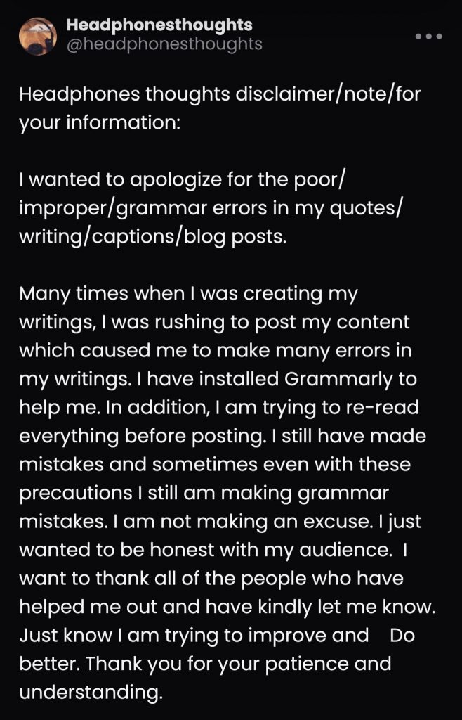 Headphonesthoughts blog -Deborah Young is the owner and creator of the blog www.headphonesthoughts.com. No one has permission to copy any content on headphonesthoughts.com and all social media platforms for headphonesthoughts.com blog. If inspired by Deborah Young’s content and content on headphonesthoughts.com you must ask for permission first before creating any content inspired by Deborah Young and headphonesthoughts.com. Not all requests will be granted. In addition, if inspired by content and have permission you must credit and attribute Deborah Young and headphonesthoughts.com